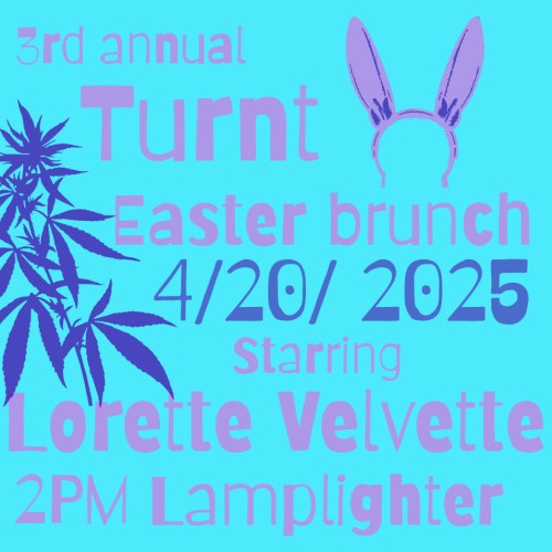 Turnt, known for their unconventional gigs, their next performance falling on an unusual date: Easter Sunday, April 20th 4/20. Adding to the intrigue, Lorette Velvette will be joining the band for what promises to be a debut performance to remember. And it is $FREE.